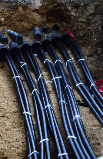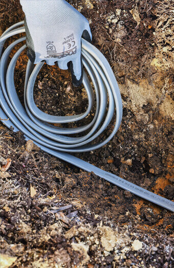Professional installation of underground service cables to connect new properties to the electricity network, including trenching, conduit installation and termination.